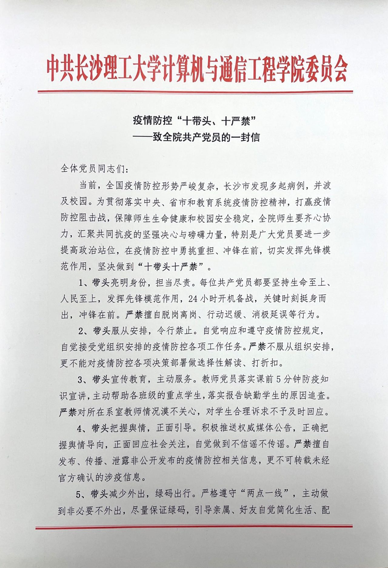 疫情防控“十带头、十严禁”——致全院共产党员的一封信