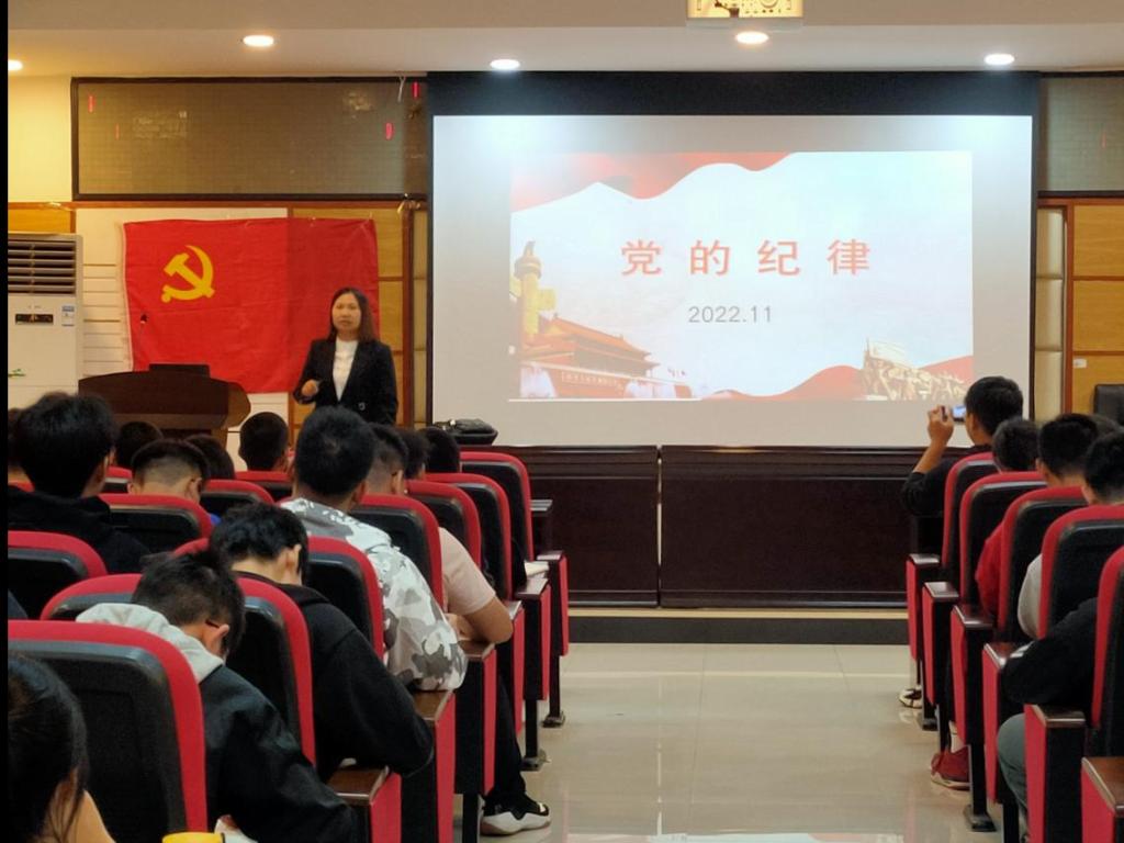 开班仪式上,蒋涛对参与本次发展对象培训班的学员表示了热烈的欢迎,并为学员介绍了本期培训班党课内容、组织设置及党校纪律。开班仪式后由刘文成为大家讲解第一次党课学习内容——《党的纪律》。以党的纪律建设史为插入点,从根源上带大家认识党纪的形成与发展,随后详细解析了党纪的主要内容:政治纪律、组织纪律、廉洁纪律、群众纪律、工作纪律和生活纪律。党的纪律是执行党的路线、方针、政策和决议,维护党的团结统一,巩固党同群众的密切联系,提高党的战斗力的重要保证。
