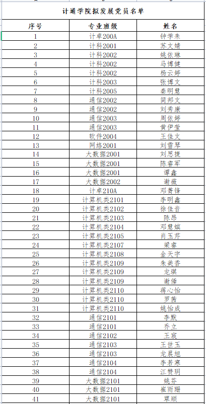 2023年上半年拟发展预备党员名单公示