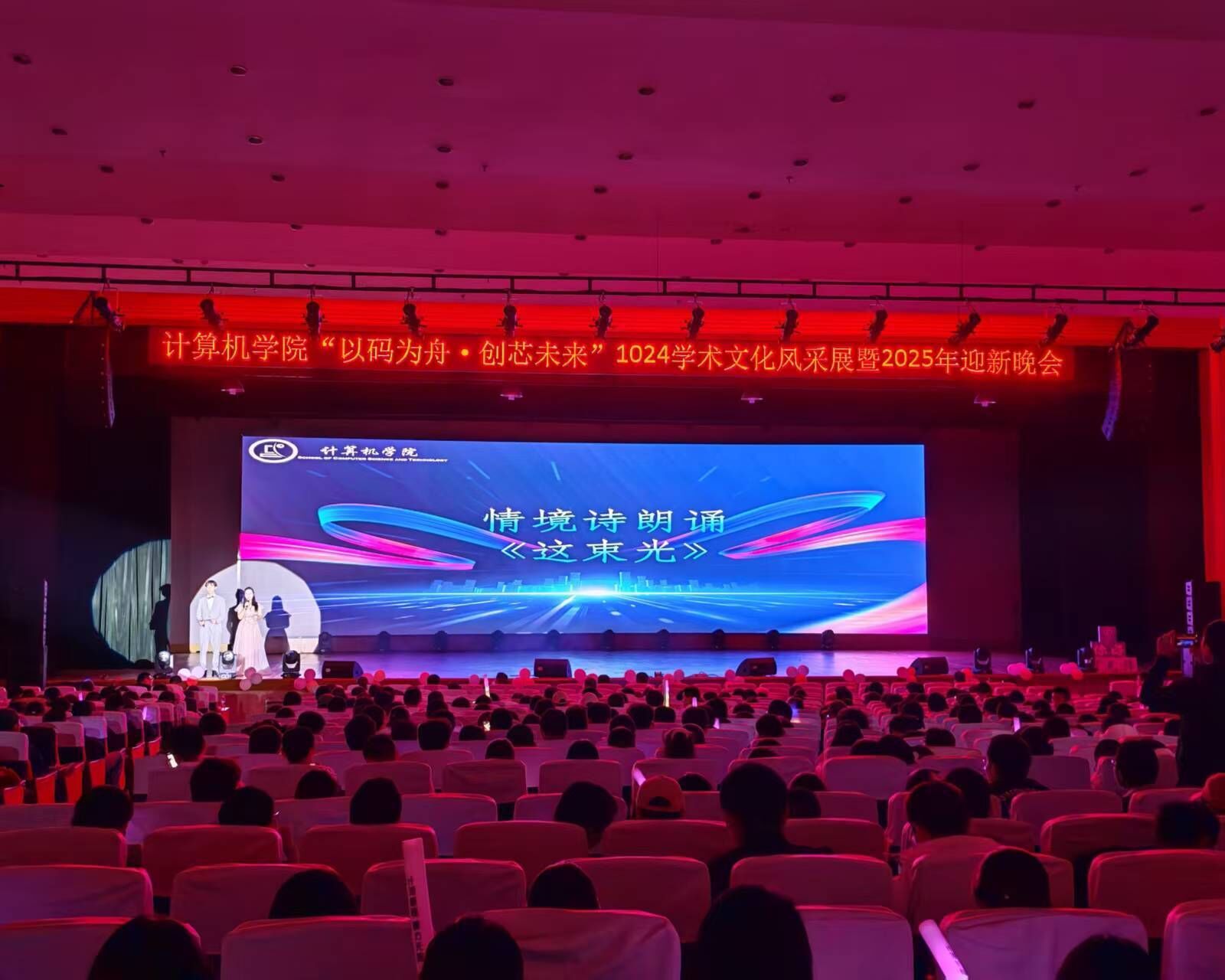 院领导谢国琪教授在晚会现场致开幕词。他代表学院祝全体师生1024程序员节快乐,并指出程序员是数字时代创新的重要力量。他特别寄语研究生同学,不仅要夯实专业基础,更要勇于挑战科研前沿,在计算机领域的广阔天地中肩负使命、书写不凡。