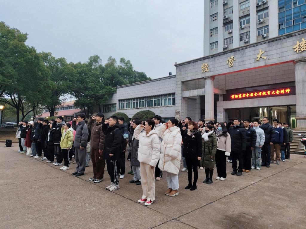 2月24日,计算机学院在金盆岭校区经管办公大楼前坪举行升旗仪式。院党委副书记王觊婧、全体学工办老师、24级200余名同学代表参与此次升旗仪式。