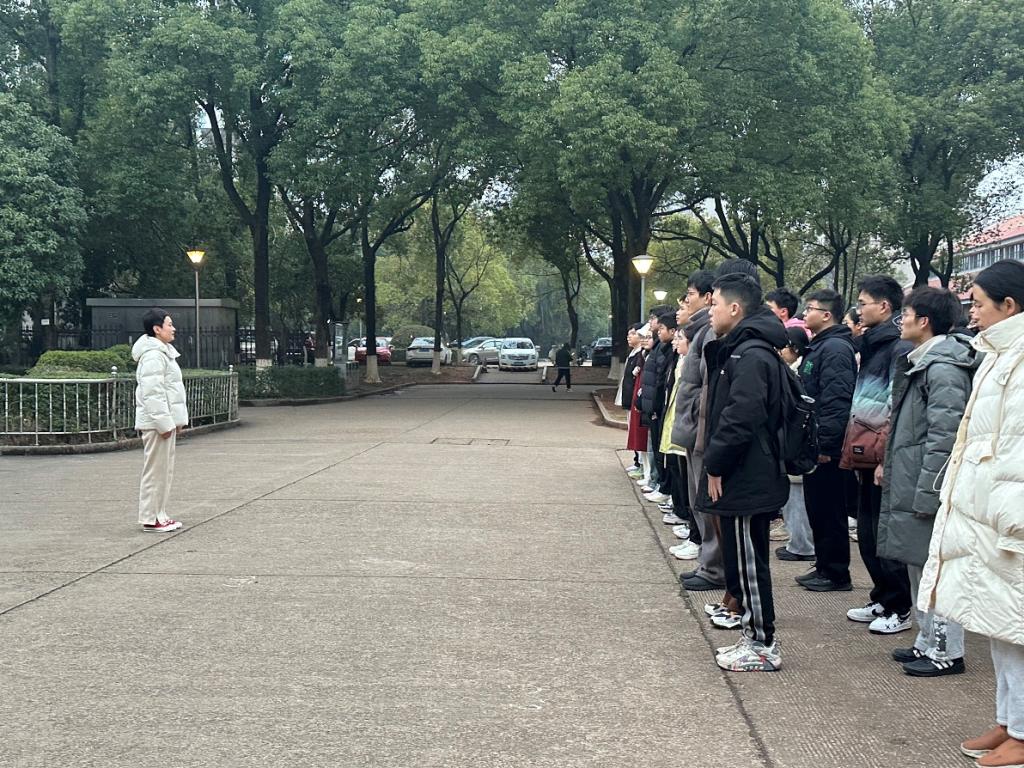 晨光微亮,国旗班的队员们迈着整齐而坚定的步伐,护送着五星红旗步入升旗场地。随着雄壮的《义勇军进行曲》奏响,五星红旗缓缓升起,全体师生肃立,行注目礼,并齐声高唱国歌,嘹亮的歌声和铿锵有力的宣誓声在校园上空久久回荡。接着,王觊婧发表讲话,她以近期大热的AI技术deepseek为切入点,鼓励同学们深入了解前沿科技,紧跟时代步伐,收获更多的学习机会和资源,不断激发创新思维和实践能力。