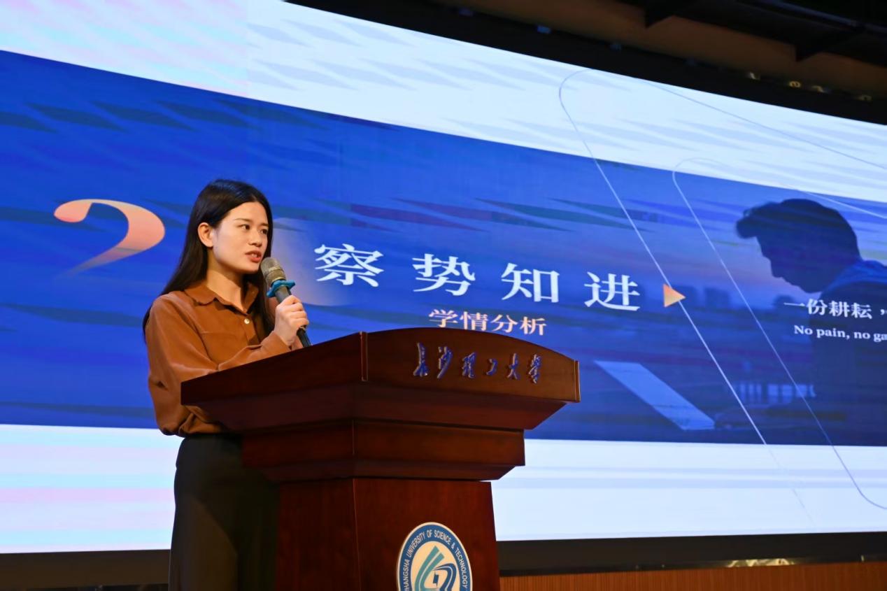 随后,刘洋通过可视化图表做学情分析。她从四六级通过率、专业平均绩点、班级成绩波动、挂科率等维度分析,肯定进步班级,并为落后班级提供改进建议。同时,她结合调查问卷数据,针对“备考环境优化”“专业课定向答疑”等高频问题进行回复,表示学院将联动各专业老师,通过增设各类讲座、提供学习资料等方式,助力学生攻克学业难关。