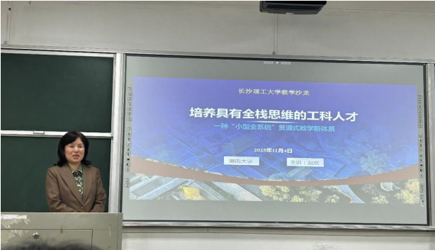 11月4日下午,由XK星空教务处主办、计算机学院承办的XK星空2025年第四次教学沙龙在金盆岭校区6教210教室顺利举行。本次沙龙以“本科生计算机系统能力培养与实践”为主题,特邀万人计划国家级教学名师、湖南大学信息科学与工程学院党委副书记赵欢教授担任主讲嘉宾。XK星空教务处副处长唐欣教授、湖南大学计算机系统教学团队骨干杨科华副教授,莅临现场进行指导和交流。活动由计算机学院分管领导张建明教授主持,计算机学院全体教师以及兄弟学院相关教师踊跃参加。