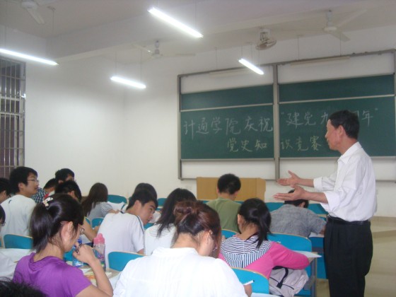 为庆祝中国共产党成立90周年,回顾党的光辉历程,继承和发扬党的优良传统,提高我院基层党组织的凝聚力和战斗力, 2011年6月15日晚7点,计通学院七十多名党员在理科楼B-125开展了党史知识竞赛活动。学院学生党建兼职组织员、学院关工委主