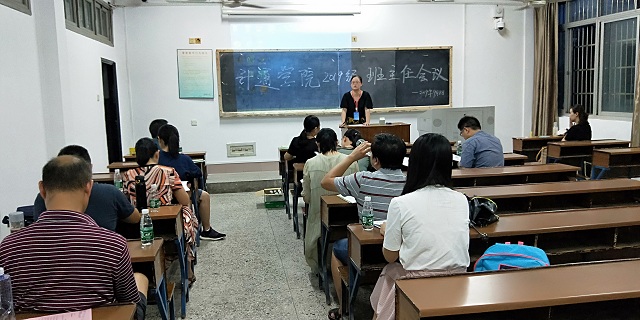 为加强学院学风建设和2019级新生班级管理工作,充分发挥新生班主任在学风建设中的排头兵作用,9月8日晚上7:00,计通学院在金盆岭校区第13号教学楼408教室召开了19级新生班主任工作会议,新生辅导员肖凤、王建新及全体新生班主任参加会议。学院副院长夏卓群、党委副书记陈华出席会议,会议由陈华主持。