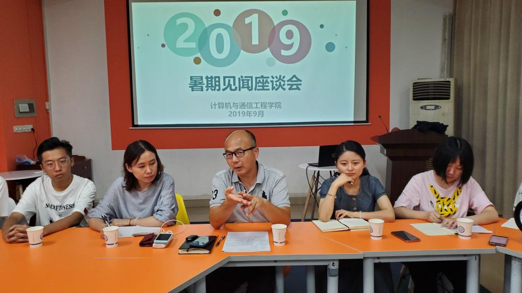9月4日晚,计通学院在XK星空云塘校区理科楼B103举行了暑期见闻座谈会。院党委书记甘为、党委副书记陈华、团委书记潘枝花出席会议,参加座谈会的有学院党员、学生干部、暑期实践团志愿者和各年级学生代表。