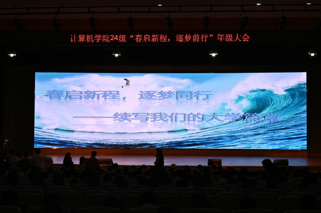 3月18日下午,计算机学院于金盆岭校区五教报告厅举行2024级本科生年级大会。计算机学院24级辅导员聂静,助理辅导员周础基出席。
