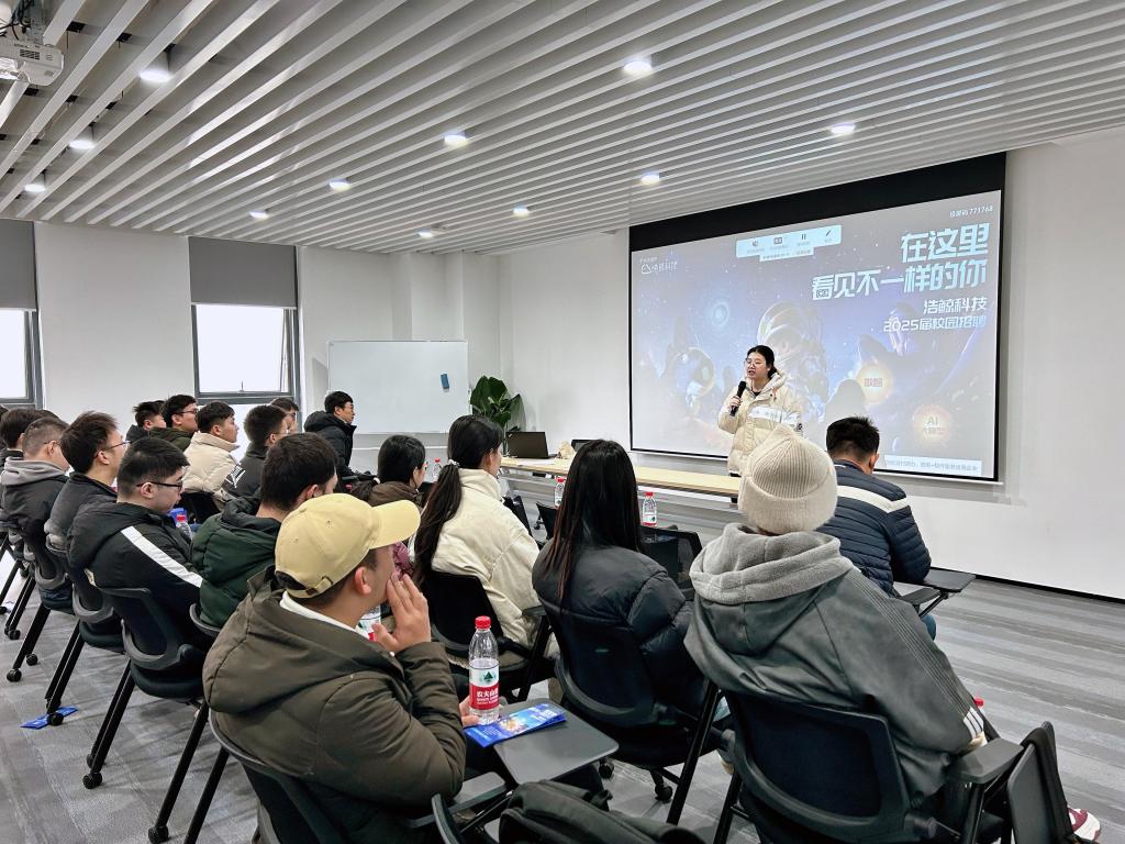 在介绍环节中,两位来自计算机学院的校友来到现场,为现场学弟学妹们分享自己在浩鲸科技的工作与生活经历。两位校友目前在技术研发部门任职,她们回忆起初入公司时的情形,首次参与第一个大型项目困难重重,在团队成员的共同努力下,通过不断查阅资料、反复测试,最终成功攻克难关。她感慨地说:“在这里,每一次解决问题都是一次成长,团队的协作精神让我迅速融入工作。”