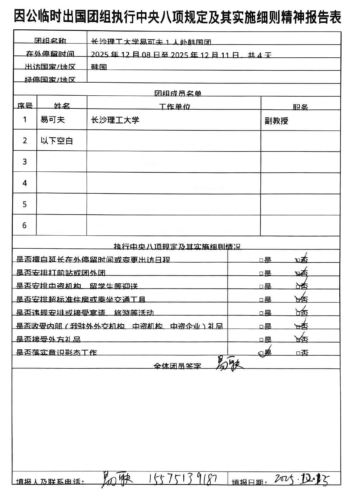 附2:因公临时出国团组执行中央八项规定及其实施细则精神报告表