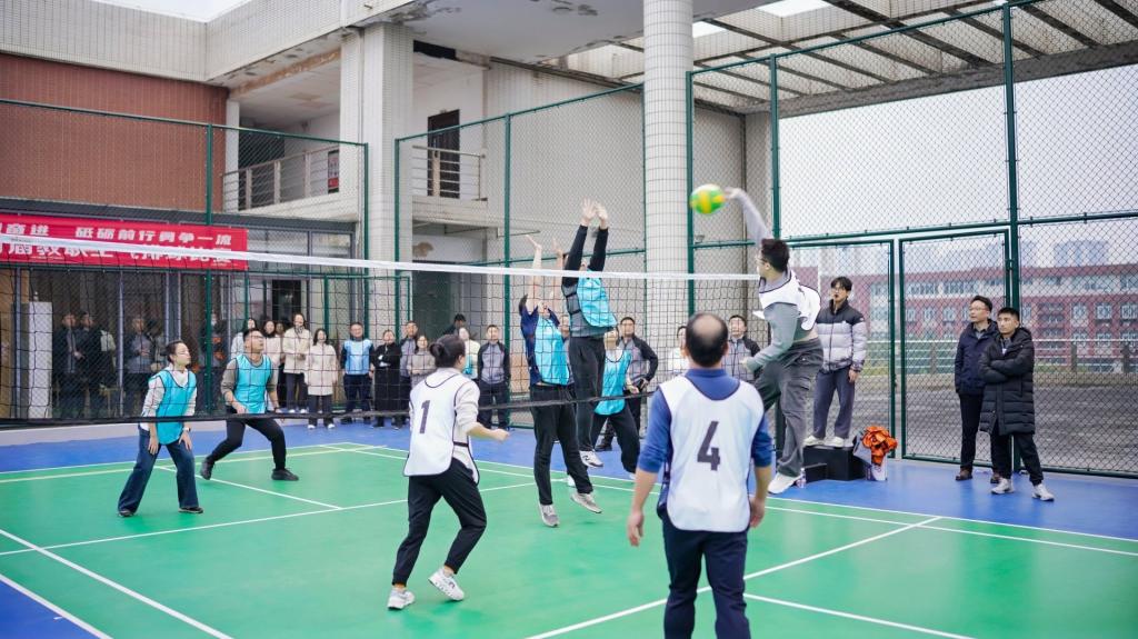 比赛现场气氛热烈,精彩纷呈。发球、传球、扣杀、拦网……队员们配合默契,攻防转换迅速,每一次得分都引发阵阵欢呼。行政学工联队凭借出色的团队配合和稳定的发挥一路过关斩将;交运工管联队则以灵活的战术调整多次化解危机;道路材料联队与实验检测联队在小组赛中展开激烈角逐,比分交替上升,悬念迭起。场边观众的加油声、呐喊声此起彼伏,将现场气氛推向高潮。经过多轮激烈比拼,最终成绩揭晓:行政学工联队以获得第一名,交运工管联队获第二名,道路材料联队与实验检测联队并列第三名。