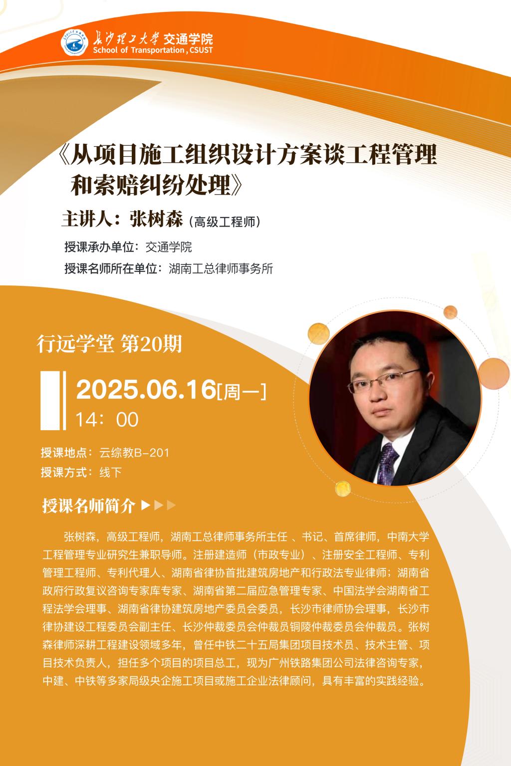卢毅教授应邀为工程管理专业作“湘桂运河”主题讲座——聚焦区域重大工程项目战略策划管理