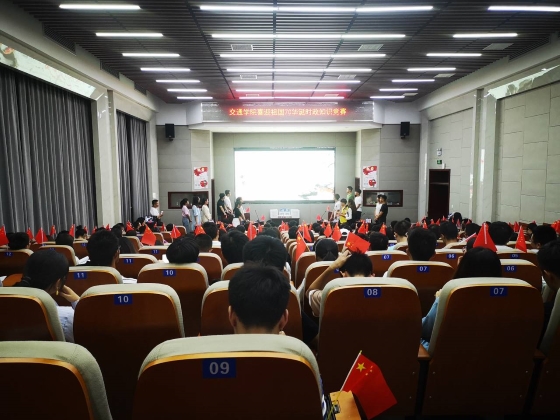 为庆祝中华人民共和国成立70周年,增强交通青年爱国之情、砥砺强国之志、实践报国之行,交通学院学生党总支携手研究生会于9月27晚在云塘校区工科二号楼交通科技报告厅举办“我和我的祖国——我‘要学习强国’”主题时政知识竞赛决赛。校关工委常务副主任王乃厚、学院特邀党建组织员、关工委吴滨、学院学生党总支副书记肖敏强、研究生辅导员刘莎出席了本次活动,两百余名学生党员、本科生、硕士、博士现场观看竞赛。