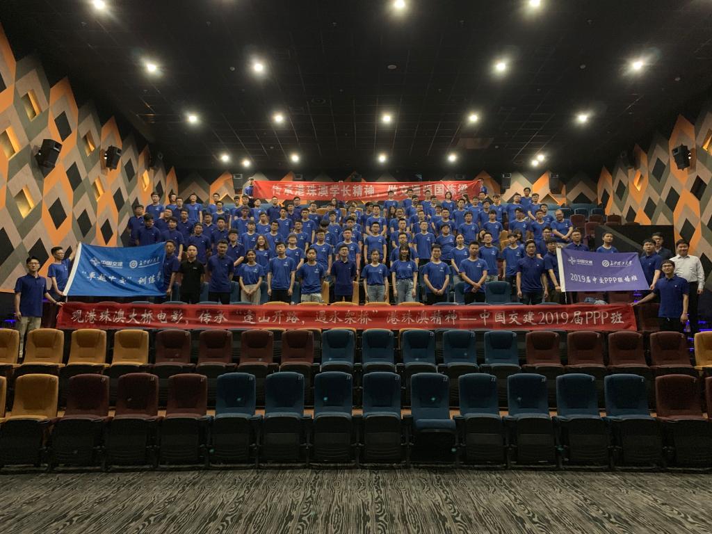 观影结束后,同学们自发喊起了“交融天下,建者无疆”的口号,一起为即将成为一名未来工程师宣誓。2019届卓越中交训练营林浪涛在观影后表示:最让人感动的莫过于四世同堂坚守港珠澳大桥,最让人难忘的莫过于桥上的中国结,最让人兴奋的莫过于十年的坚守换来的通车仪式。对于即将进入中国交建的我们,为能参与到“港珠澳大桥”、“一带一路”等超级工程感到自豪!