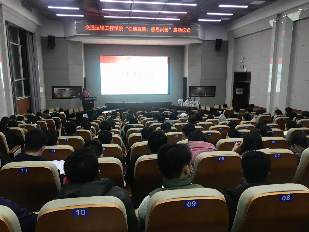 12月13日晚,交通学院于工二交通科技报告厅开展了“仁慈友善·感恩尚善”主题教育启动仪式,与会嘉宾有校关工委常务副主任王乃厚、院党委副书记田上、院关工委吴滨及学工办各位老师。