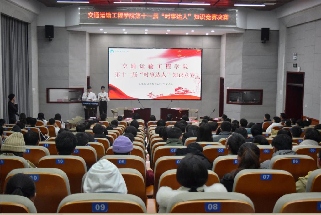 12月28日晚,“青春心向党,时事伴我行”之交通学院第十一届“时事达人”知识竞赛决赛于云塘校区交通科技报告厅正式拉开帷幕,校关工委常务副主任王乃厚、交通学院党委书记孔伟红、党委副书记涂道勇、学工办全体辅导员出席。