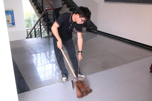 本科生测绘专业党支部书记史亚杰激励大家:“群众是否满意是检验我们工作的唯一标准,工科二号楼是交通学院师生工作学习的‘主阵地’,在学院师生的监督下开展党日活动对我们提出了更高的要求,利用好本次活动充分展示我们学生党员的精神风貌,在劳动实践中感悟我党全心全意为人民服务的宗旨。”