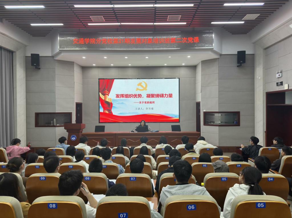 11月上旬,交通学院分党校开展第二十一期发展对象培训班理论教学活动,相继邀请到校党委组织部组织员胡秀英、交通学院党委书记成华、校党委组织部副部长李芳瑾为本期学员授课,第二十一期发展对象全体学员参加。