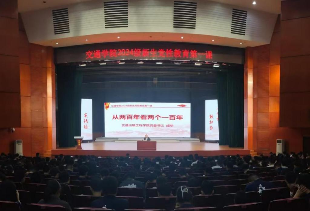 11月13日晚,交通学院在云塘校区大会堂举行了2024级新生党性教育第一课。院党委书记成华,院党委副书记任志祥,学工办全体老师,各党支部支委,2024级新生参加。