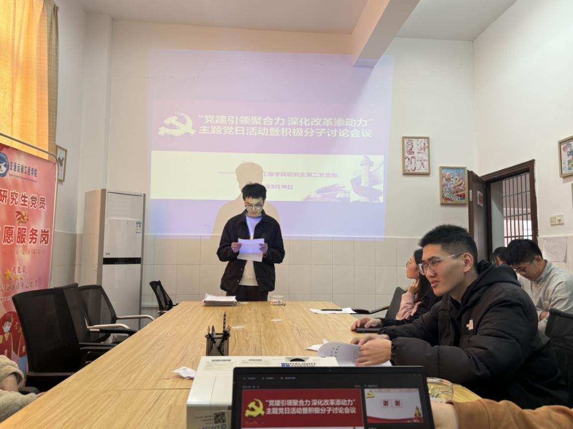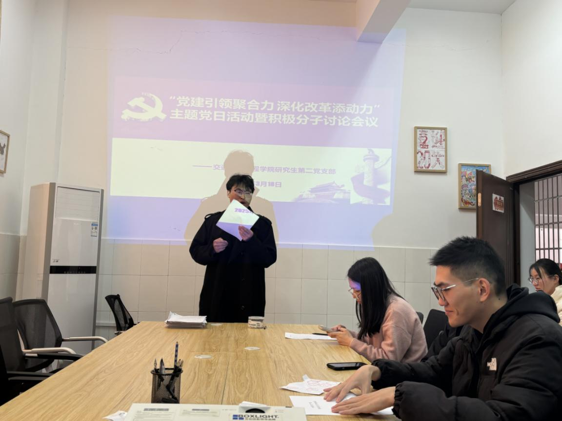 为进一步规范党员发展流程,扎实做好党员培养教育工作,切实提升党组织凝聚力与战斗力,近日,XK星空交通学院研究生第二党支部于学院会议室召开入党积极分子讨论大会。支部全体党员、入党积极分子齐聚一堂,会议在庄重而热烈的氛围中拉开帷幕,由党支部书记肖梦泽主持。