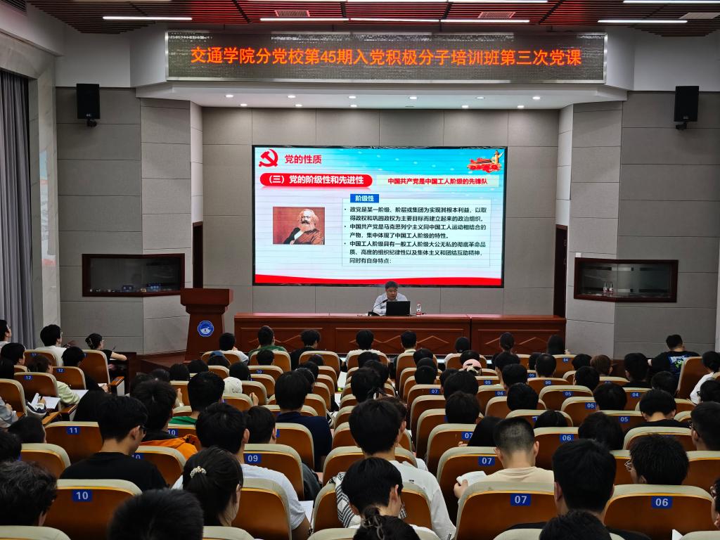 4月下旬,交通学院分党校组织开展了第四十五期入党积极分子理培训班的理论教学活动。交通学院学生党总支副书记肖敏强、马克思主义学院教授余乃忠、学校创业与就业指导处处长田上、物电学院党委书记张国强先后为本期学员授课。