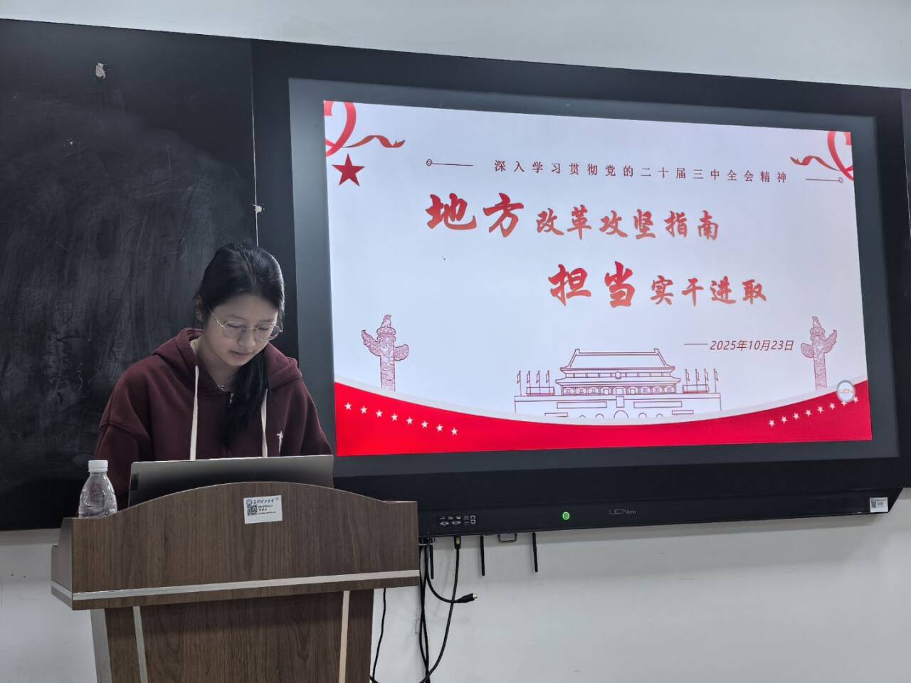 “一实践”研讨环节聚焦“基层党建如何服务保障中心工作”这一核心主题,党员们结合专业学习、科研创新、服务同学等具体实践展开热烈交流。大家一致认为,要将学习成果转化为实际行动,实现“党建引领学业进步,实干助推学校发展”的目标。现场交流深入、思想碰撞频繁,进一步凝聚了“锚定方向不偏移、笃行实干求实效”的共识。