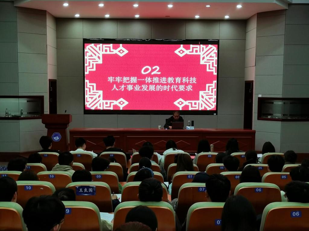 在授课过程中,余乃中重点阐述了“为什么要推进一体教育科技人才发展”以及“怎样推进一体教育科技人才发展”两个关键实践问题,他指出,该战略对党在长期执政条件下具有重要意义,并强调要贯彻“四个面向”,鼓励全体入党积极分子要坚持学习,注重实践,将学员对教育科技人才发展规律的思想认识提升到新高度。