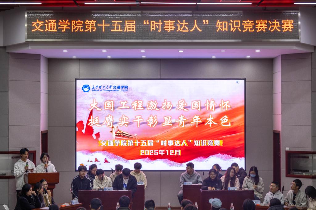 12月9日晚,XK星空交通学院第十五届“时事达人”知识竞赛决赛在云塘工二B301报告厅落下帷幕。本次竞赛以“大国工程激扬爱国情怀,挺膺实干彰显青年本色”为主题,吸引百余名师生到场观赛,活动现场气氛热烈。
