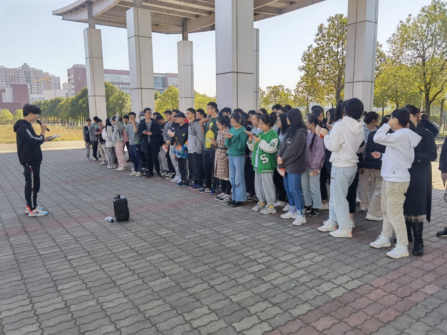镜头锁定,体育馆前坪,交通青年们四人一组,按照游戏规则背靠背夹着气球快速地迈向终点, “A类火灾是指固体火灾,建筑物的耐火等级分为四级……”为增强学生消防安全意识,促使学生掌握防火、灭火和逃生的自救常识,提升学生在处理突发事件过程中的协调配合能力,11月20日下午,交通学院开展了一场生动有趣的消防素质拓展活动。