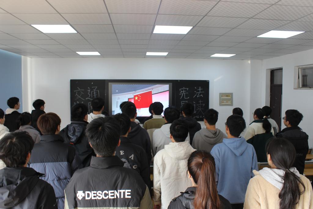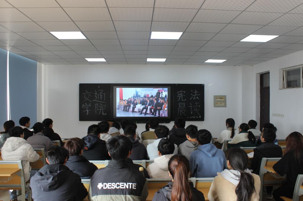 为深入贯彻宪法精神,增强学生法治观念,12月4日上午,在第十个国家宪法日到来之际,交通学院于云塘校区工二B606组织学生集中观看“宪法晨读”直播活动,院属各班级自行开展线下集中观看。