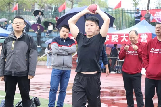 比赛过程中,百米赛道上的老师,一马当先,下一秒,脚尖点地。铅球比赛中,老师们屏息凝神、蓄力投出,一道完美的抛物线出现在空中。交通学院师生们充分发挥“敢担当、勇争先”的交通青年精神,老师们更是身先士卒,满载荣耀而归,荣获教工组团体总分第一名。其中,彭军龙、杨波分别夺得铅球甲、乙第一名。