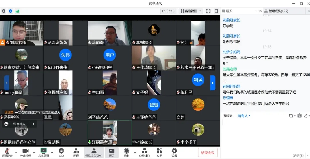 此外,交通学院还组织召开线上家长座谈会,学院党委副书记涂道勇出席会议,刘禹、汪招霞主持会议,详细介绍学校的基本情况。在问答环节,老师与家长积极互动,耐心解答重点问题,如推荐学生统一购买保险、大学学习生涯规划、学院教学与生活安排、大学期间服兵役要求等等,全力解决家长疑问,共建家校沟通桥梁,更好地助力学生成长成才。