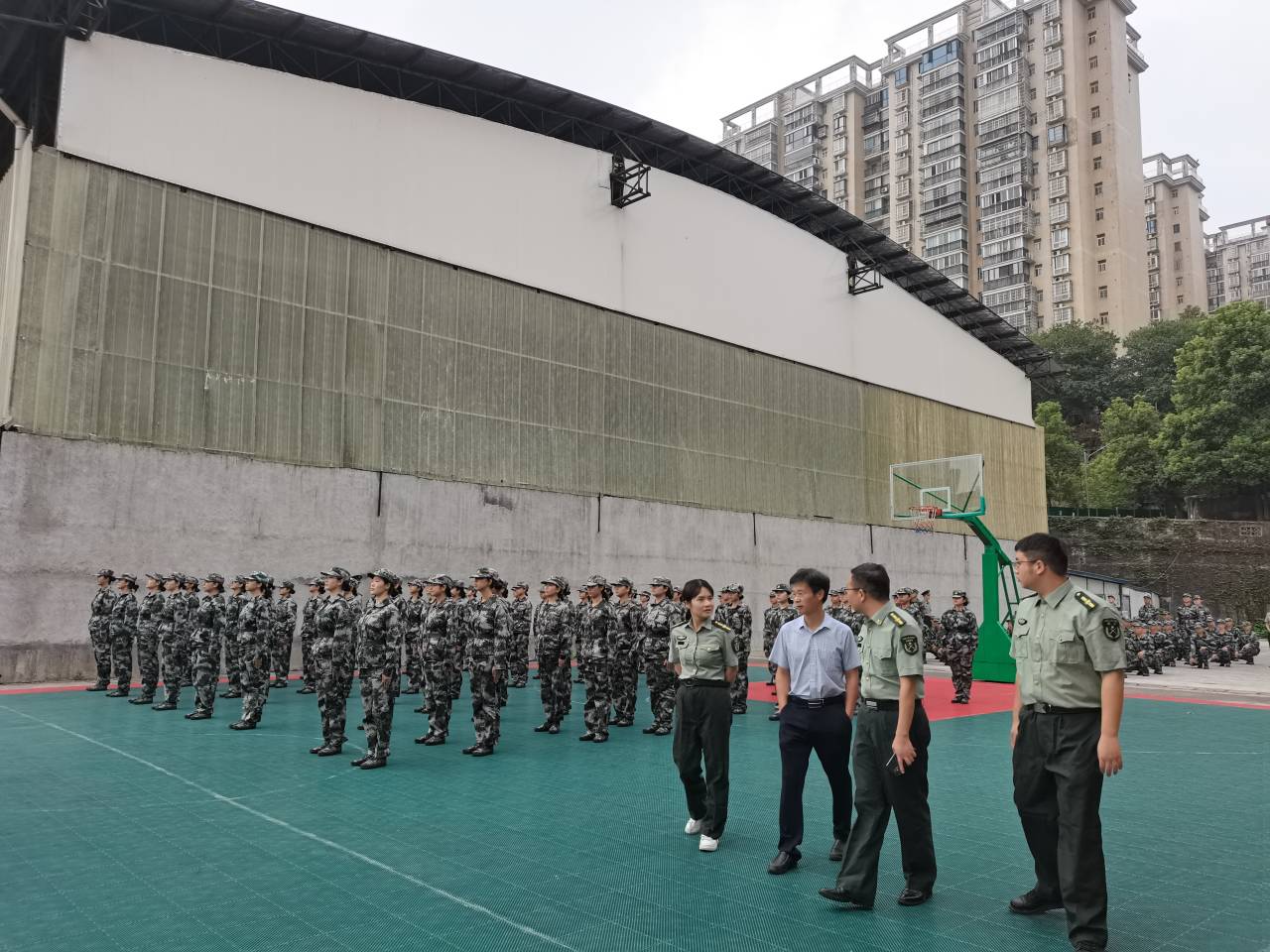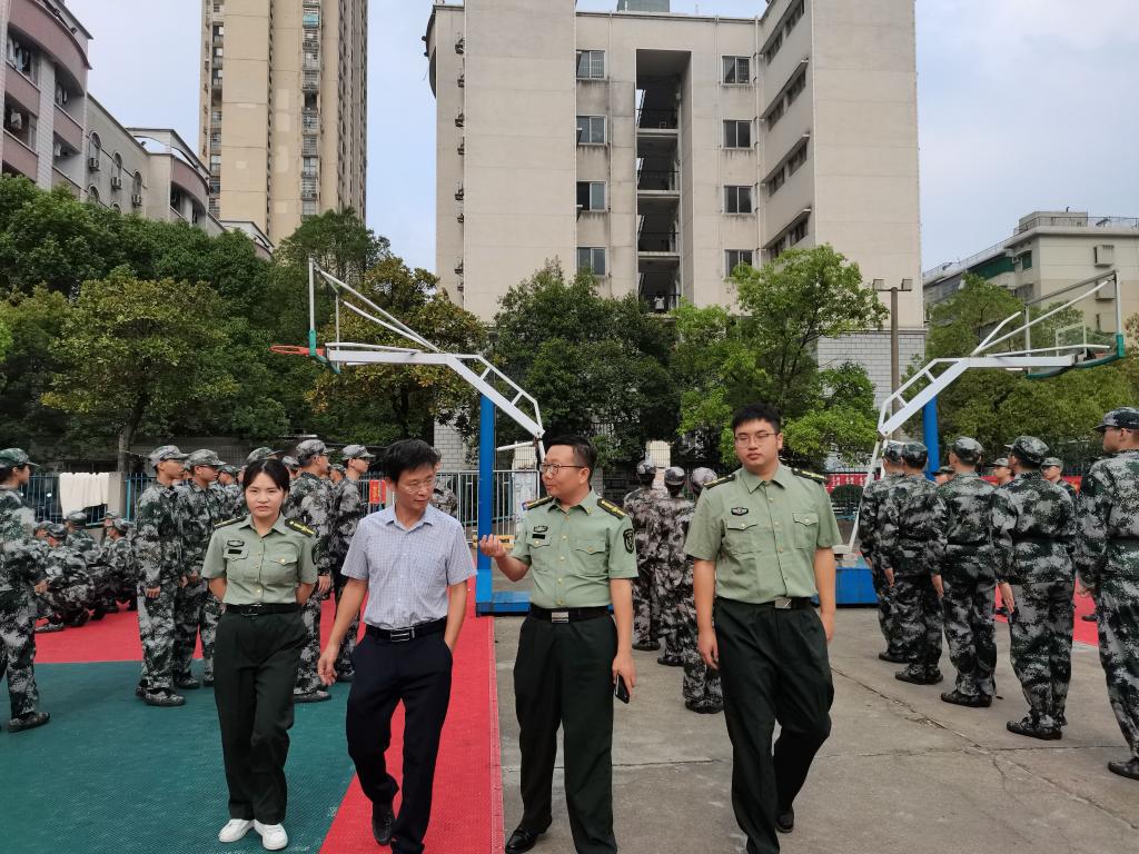9月2日上午,交通学院党委书记刘朝辉,党委副书记涂道勇前往金盆岭南苑篮球场看望2022级军训新生,新生辅导员刘禹、汪招霞陪同。