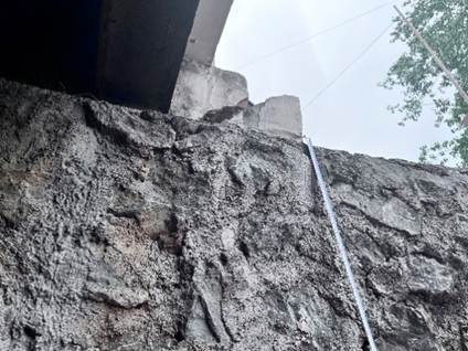 在横桥村发现部分道路边坡非常陡峭,仅仅用水泥进行支护,而且存在严重的开裂现象,村民不得不用棍子或者木头支撑起来。实践团成员当即意识到边坡破坏的严重性,可采用课题组现有的锚杆框架梁技术来解决边坡问题。