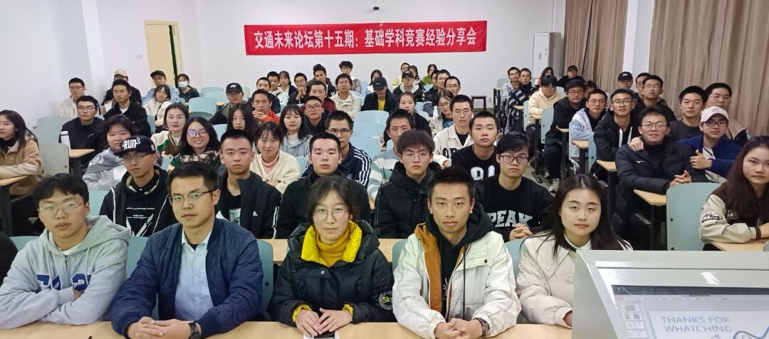 1115日晚,交通学院于金盆岭校区六教106举办第十五期交通未来论坛之基础学科竞赛经验分享会。此次论坛有交通学院23级学生辅导员彭笠出席,交通学院23级全体竞赛预科班同学参加。本次论坛囊括力学竞赛、数模竞赛、英语竞赛三个板块,分别由李瑞敏、刘权清、胡松、熊冠智、张思思五位学科竞赛学生代表主讲。
