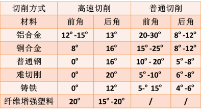 表2 高速切削与普通切削刀具角度对比