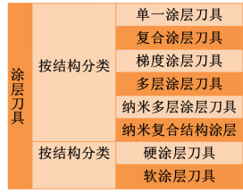 涂层材料常用的涂层材料[18]有金刚石、碳化物、氮化物、碳氮化物、氧化物、硼化物、硅化物、复合涂层等八大类数十个品种,常见的涂层刀具有金刚石涂层刀具、Al2O3涂层刀具、TiC合金刀具、TiN涂层刀具及其三种混合的TiC-Al2O3-TiN复合涂层刀具、立方氮化硼(CBN)涂层刀具等。涂层刀具的分类和结构如表5和图3所示:
