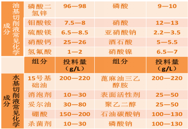 表1 切削液化学成分