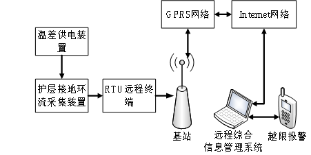 使用信号处理电路放大信号同时消除信号中的高频噪声。信号无线传输模块主要是把实时监测的相关数据传送给远程综合管理系统监控中心。最后由监控中心负责接收传感器采集到的金属护套电流信号。