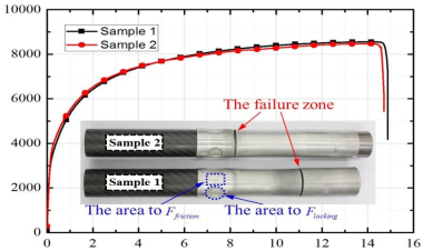 E Kara 等 对比分析了粘接长度分别为 30、40、50mm 对粘接强度和耐疲劳性能的影响。实验结果表明:搭接长度能增加接头静载强度但其疲劳寿命缩短。Jae-Hyun Park 等同样对搭接长度对接头粘接强度的影响进行了研究,得到了如上相同的结论。
