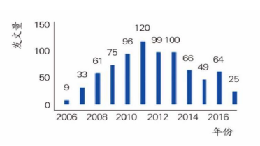 1.文献发表与趋势分析:2006年开始出现有关农家书屋研究文献(农家书屋 2004 年开始在部分地区试点),2007年开始增长显著(2007年作为文化惠民工程在全国范围内推行),2012年达到顶峰,之后研究文献数量呈波动式递减。