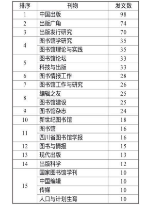3.刊发期刊分布:刊发期刊有 100 余种,涉及 新闻学、出版、图书情报与档案管理、经济学、农学、教育学、政治学等多个学科。