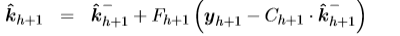 假定已知初始条件 和 。 Q和R分别是过程协方差矩阵和测量误差协方差矩阵。 Fh是时间步h的卡尔曼增益。矩阵Ch在每个时间步长具有不同的维度,这意味着协方差矩阵R的维数可变。