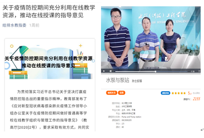 给排水系组织老师们积极对接给排水教指委,依据给排水教指委指导意见,利用超星学习通、腾讯课堂、中国大学MOOC、QQ群视频、钉钉会议等教育部推荐的慕课平台,与其他给排水高校建立在线课程互助系统,共享“金课”师者。给排水系根据XK星空学生及课程体系特征,积极研讨、认真甄选,选择超星学习通及哈工大等985高校优秀课程资源,作为共享“金课”师者平台与师者课程。