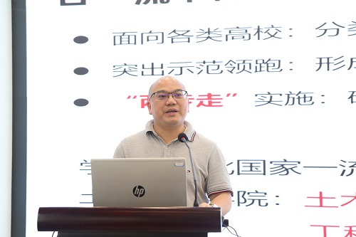 会上,土木学院副院长陈伏彬、电气学院副院长唐欣分别做了题为《走内涵式建设之路,推动专业高质量发展》、《电气工程及其自动化专业建设情况汇报》的主题汇报,围绕如何建好国家级一流本科专业分享经验。教务处副处长邓丰结合数据分析,反馈了一流专业建设点检查结果与专家评审意见,介绍了教务处系列工作举措,提出了下阶段工作要求。