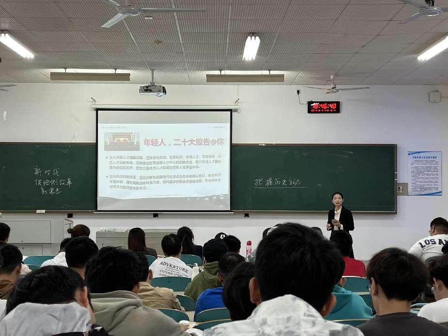 用党的科学理论武装青年,用党的初心使命感召青年,铸魂育人、立德树人是高校思政课教师的使命与责任。党的二十大报告新鲜出炉,便走进了XK星空马克思主义学院老师主讲的思政课堂。在陈万球书记的“道德与法治”课堂上,他引用习近平总书记对青年寄语,谆谆告诫同学们要“坚定不移听党话、跟党走,怀抱梦想又脚踏实地,敢想敢为又善作善成,立志成为新时代好青年。”在钟芙蓉博士的党的二十大报告主题公开课上,她围绕党的二十大报告,设计了大变革赢来新时代;新时代产生新课题;新课题呼唤新思想;新思想引领新时代四个板块,深情讲述了习近平新时代中国特色社会主义思想的发展历程和历史地位。