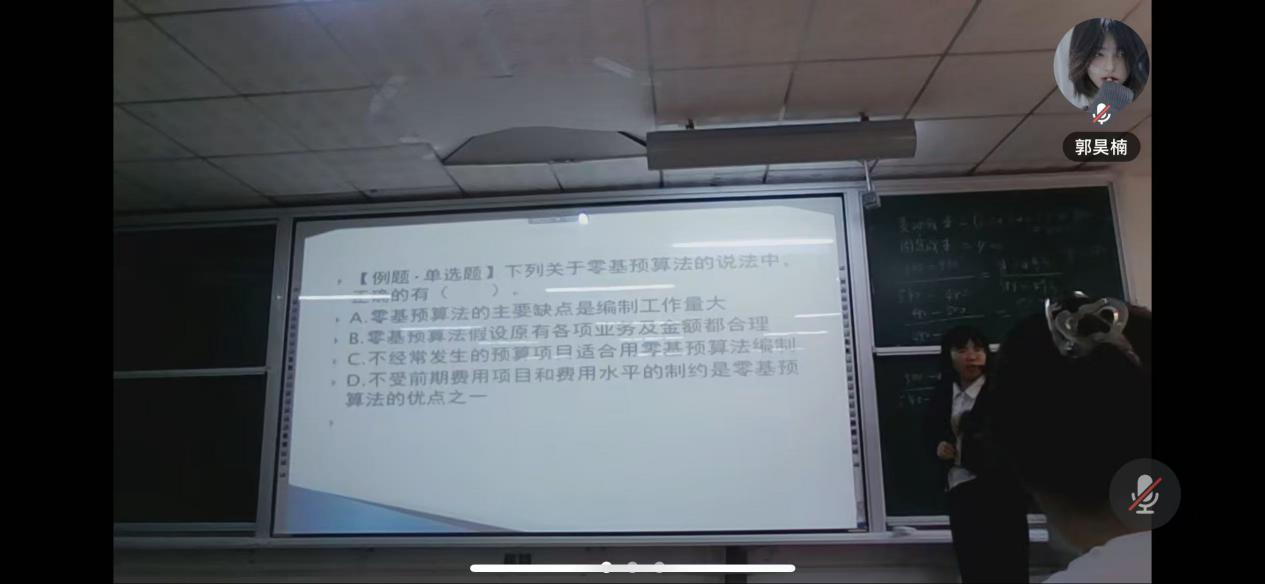 尽管身处不同的校园,但两校的师生们却通过线上平台实现了无缝对接。当线上课程开启,屏幕成为了知识传递的窗口,连接着琼台师范学院老师和本校的同学们。在本校谭娟老师的教学下,线上线下每位同学都展现出了极高的学习积极性和专注度。在课程中,学生们积极参与讨论,而教师则耐心引导大家深入思考和理解全面预算的精髓。这种互动式的教学方式,不仅激发了学生们的学习热情,也促进了师生之间的交流与互动。
