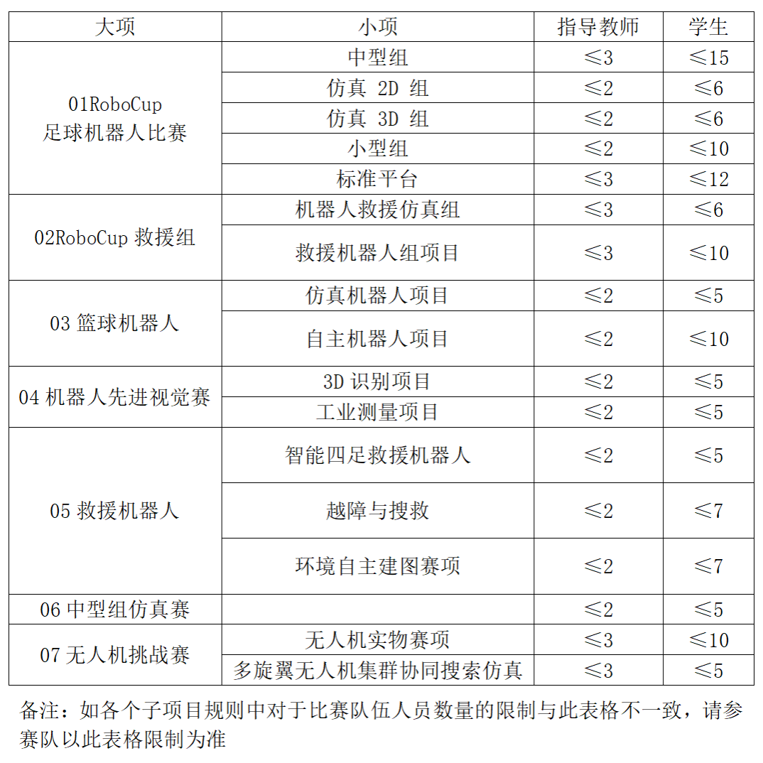 第一轮比赛各个比赛项目的报名人数限制,参考以下要求: