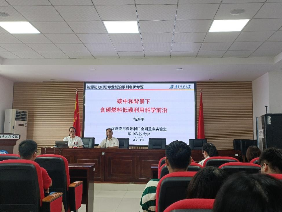 在我国第7个“全国科技工作者日”—— 5月30日,能动学院“能源动力类专业前沿系列名师专题课程”在新能源大楼2栋502报告厅拉开了序幕。本次讲座由能动学院院长陈荐主持,邀请了华中科技大学能源与动力工程学院、煤燃烧与低碳利用全国重点实验室杨海平教授主讲,能动学院教学副院长田红、孙小琴等共200余名师生出席了本次活动。