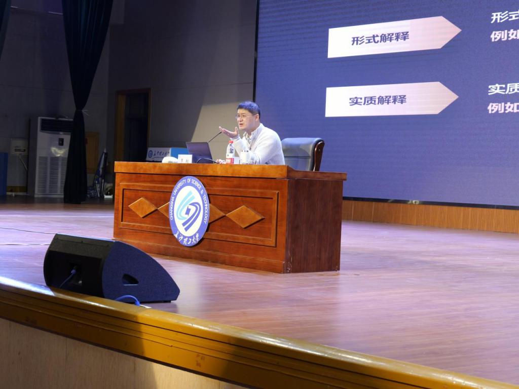 11月8日上午,XK星空特别邀请到知名法学家、法治教育推广者中国政法大学刑事司法学院罗翔教授作《罪刑法定与刑法的解释》的专题讲座。讲座由法学院党总支书记田兴洪主持,法学院、城南学院文法艺术系共计1000余名师生在金盆岭校区五号教学楼报告厅现场聆听讲座。